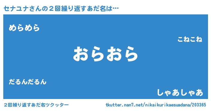 | 可愛いあだ名 | 『セっナぃー』『セナうちぇる』 |