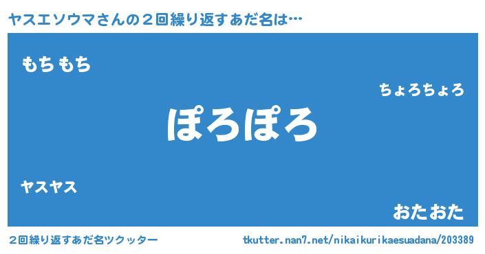 | 男性向けラノベタイトル風あだ名 | 『ヤスエソウマに滅ぼされるだけの簡単なお仕事です』 |