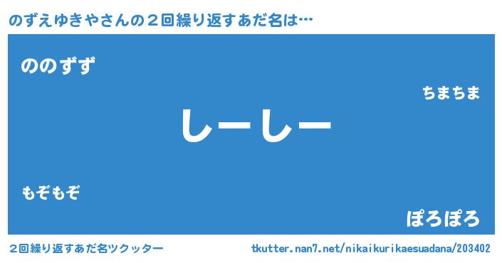 | 意味不明あだ名 | 『住所不定無職のずえゆきや(91歳)』 |