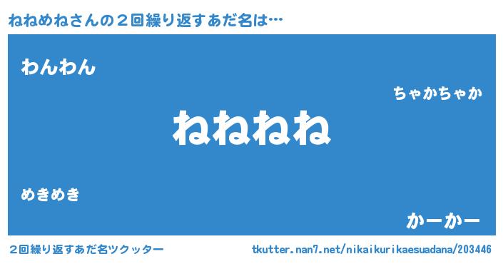| 肩書あだ名 | 『ねねめねディレクター』『ねねめね大尉』 |