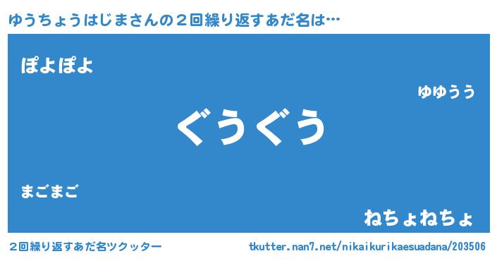 | ヘコむあだ名 | 『ゆうちょうはじま(笑)』『ゆうを』 |