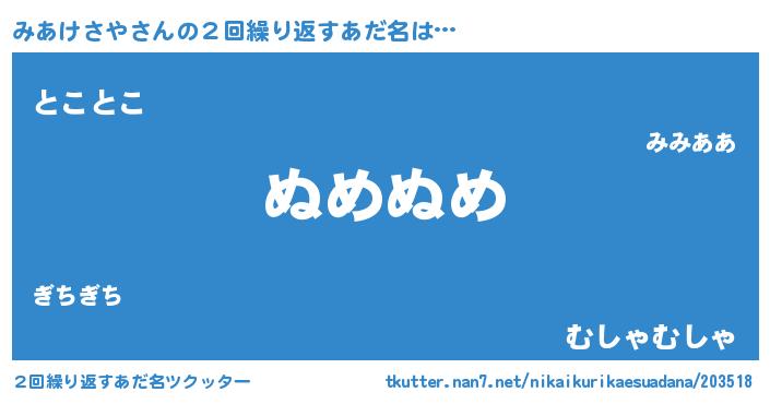 | 意味不明あだ名 | 『とにかく怪しいみあけさや』 |