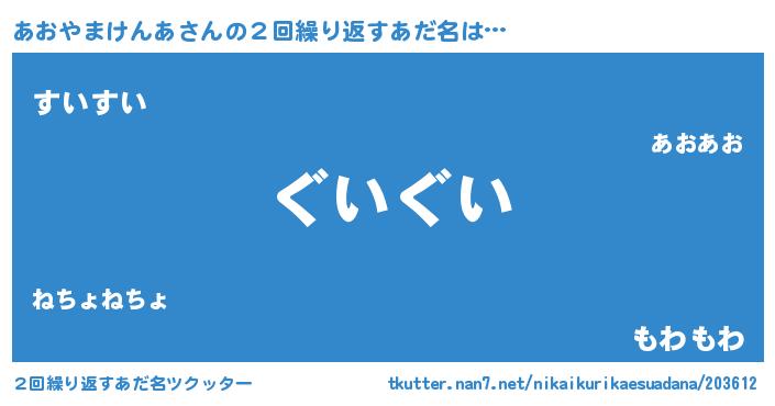 | 欧米人風あだ名 | 『ダルビッシュあおやまけんあ』 |