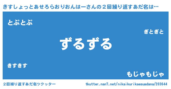 | 意味不明あだ名 | 『住所不定無職きすしょっとあせろらおりおんはー(86歳)』 |