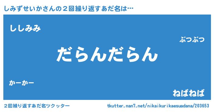 | 意味不明あだ名 | 『しみずせいかフォーエバー』 |