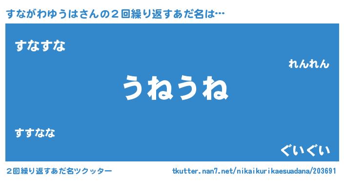 | 欧米人風あだ名 | 『ウサインすながわゆうは』 |