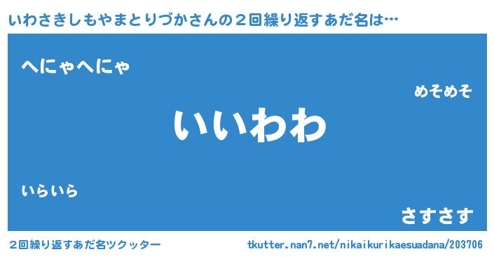 | 男性向けラノベタイトル風あだ名 | 『いわさきしもやまとりづかに滅ぼされるだけの簡単なお仕事です』 |