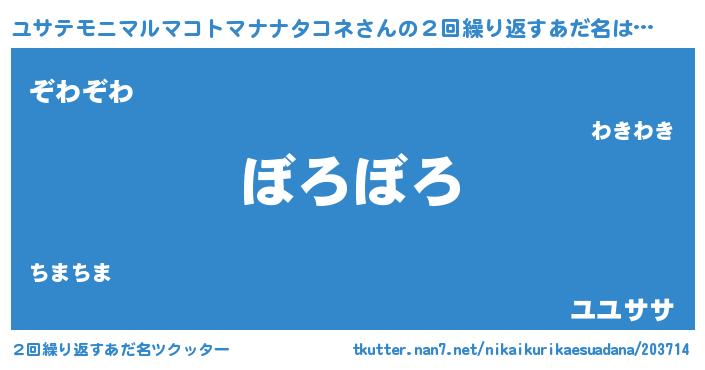 | 男性向けラノベタイトル風あだ名 | 『ノーゲーム・ノーユサテモニマルマコトマナナタコネ』 |