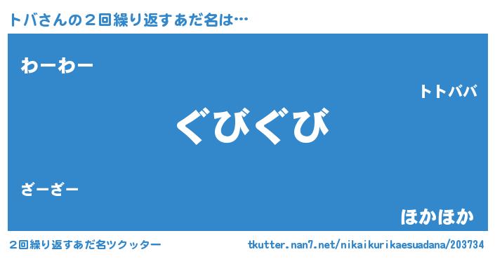 | 意味不明あだ名 | 『永久保存トバ』『なめこ科トバ属』 |
