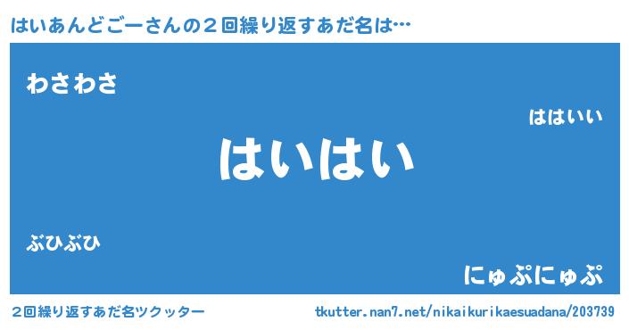 | ピコ太郎風あだ名 | 『ハコ次郎』『ハイ太郎』『ピハ一郎』 |