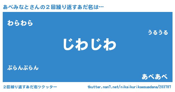| 意味不明あだ名 | 『住所不定無職あべみなと(93歳)』 |