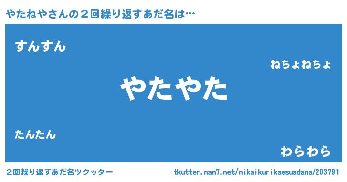 | 欧米人風あだ名 | 『アンジェラ・やたねや』 |