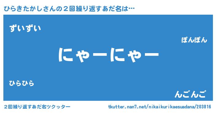 | ポケモン風あだ名 | 『ヒヒラキタカシ』『ヒーライ』 |