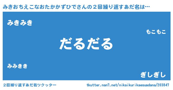 | 恥ずかしいあだ名 | 『プリティーみきおちえこなおたかかずひで』 |