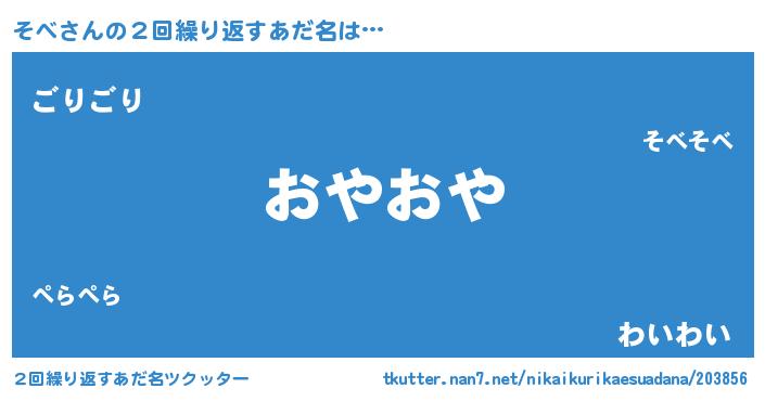 | 欧米人風あだ名 | 『ウサインそべ』『ダルビッシュそべ』 |