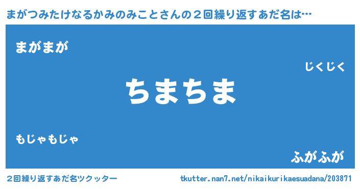 | 恥ずかしいあだ名 | 『プリティーまがつみたけなるかみのみこと』 |