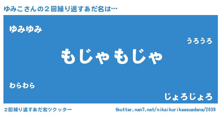 | 男性向けラノベタイトル風あだ名 | 『Re:ゆみこから始める異世界生活』 |