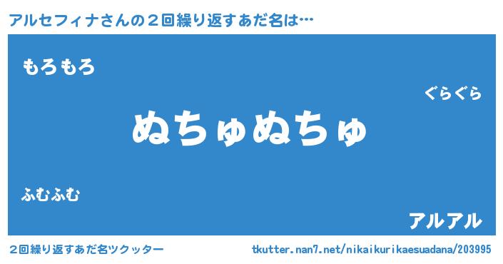 | 意味不明あだ名 | 『とにかく怪しいアルセフィナ』 |