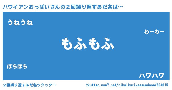 | 男性向けラノベタイトル風あだ名 | 『Re:ハワイアンおっぱいから始める異世界生活』 |