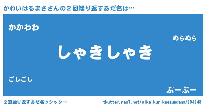 | 料理風あだ名 | 『かわいはるまさのカルパッチョ風』 |