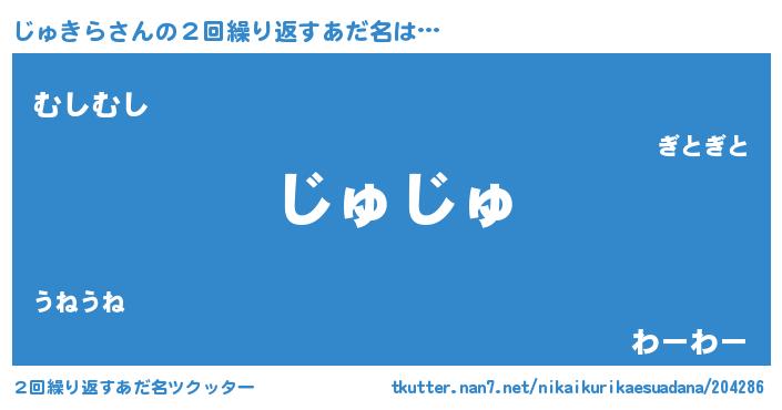 | 意味不明あだ名 | 『ペロリンじゅきら』『自称じゅきら』 |