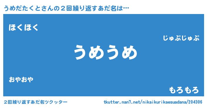 | ポケモン風あだ名 | 『ウメチュウ』『ウックウザ』 |