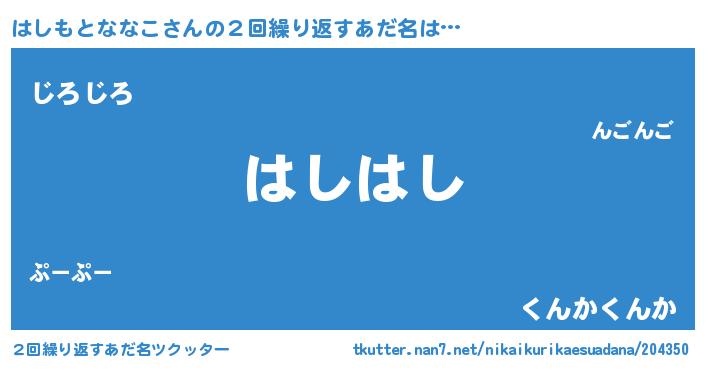 | ポケモン風あだ名 | 『ハシチュウ』『ハーシイ』 |