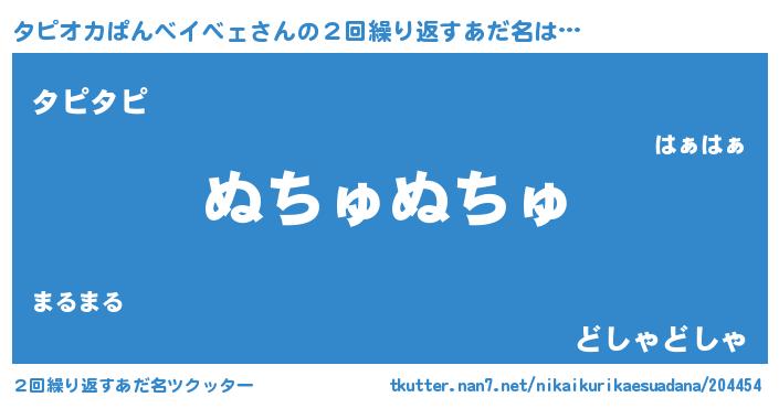 | ポケモン風あだ名 | 『ヒタピオカパンベイベェ』『タピチュウ』 |