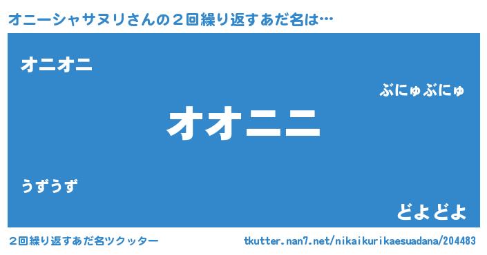 | 男性向けラノベタイトル風あだ名 | 『やはりオニーシャサヌリの青春ラブコメはまちがっている 』 |