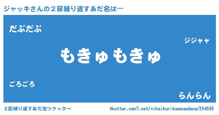 | 男性向けラノベタイトル風あだ名 | 『Re:ジャッキから始める異世界生活』 |
