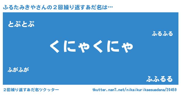 | ヘコむあだ名 | 『ふるたみきや(小並感)』『酢こんぶ』 |