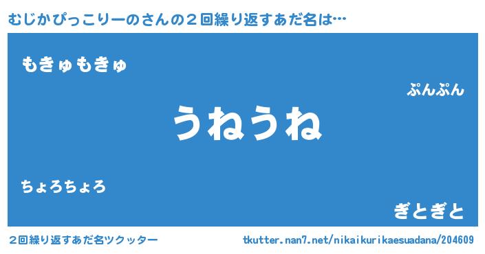 | 欧米人風あだ名 | 『ウサインむじかぴっこりーの』 |
