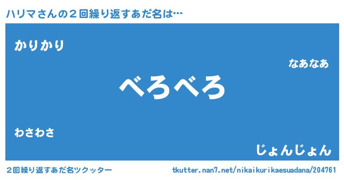 | ヒーロー風カッコイイあだ名 | 『慈愛の使者ハリマ』『ネオハリマ』 |