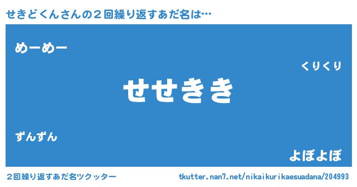 | 意味不明あだ名 | 『せきどくんフォーエバー』 |