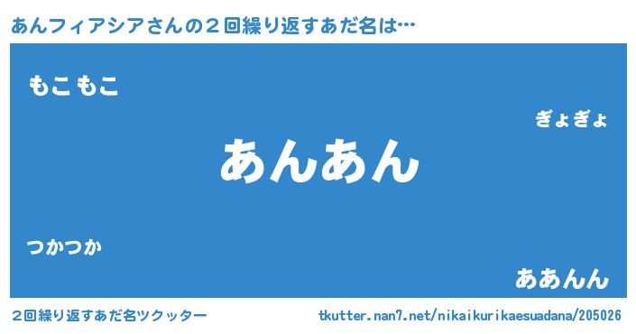 | 男性向けラノベタイトル風あだ名 | 『あんフィアシアの憂鬱』 |
