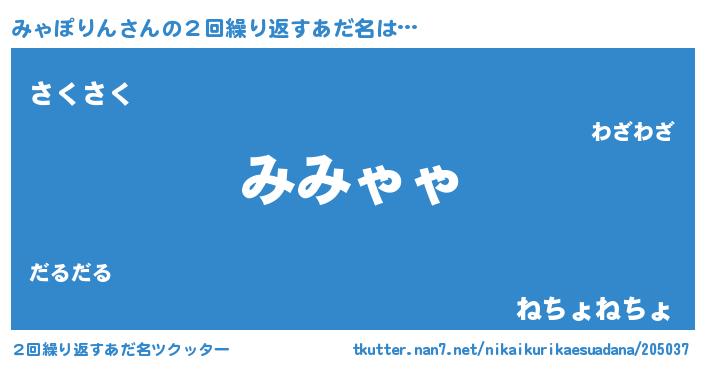 | 意味不明あだ名 | 『みゃぽりんフォーエバー』 |