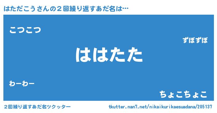 | 男性向けラノベタイトル風あだ名 | 『はただこうに滅ぼされるだけの簡単なお仕事です』 |