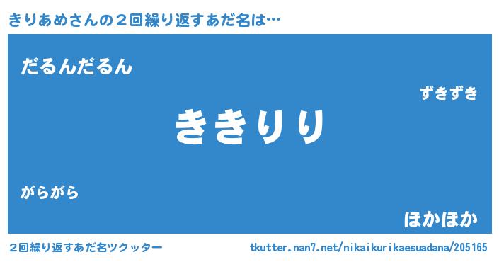| 欧米人風あだ名 | 『きりあめクリステル』 |