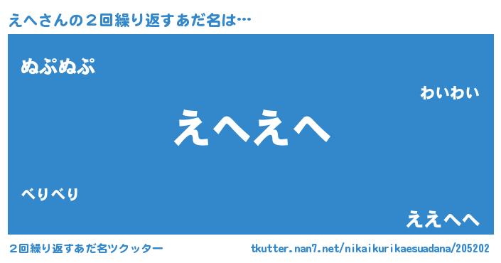 | ヘコむあだ名 | 『えへにゅー』『えへお』『なまこ酢』 |