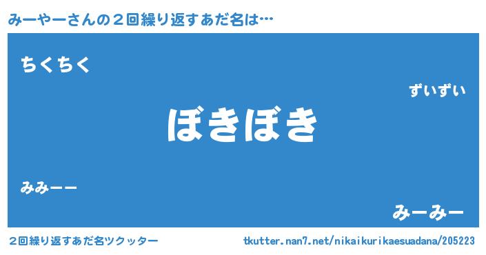 | ヘコむあだ名 | 『みーもー』『牛乳』『みー太郎』 |