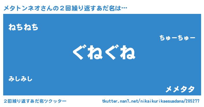 | ヘコむあだ名 | 『メタトンネオ(笑)』『メタお』 |