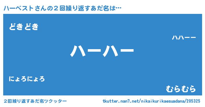 | ヒーロー風カッコイイあだ名 | 『スーパーハーベスト』『銀牙騎士ハー』 |