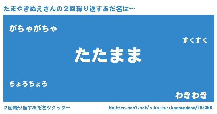 | 意味不明あだ名 | 『たまやきぬえフォーエバー』 |