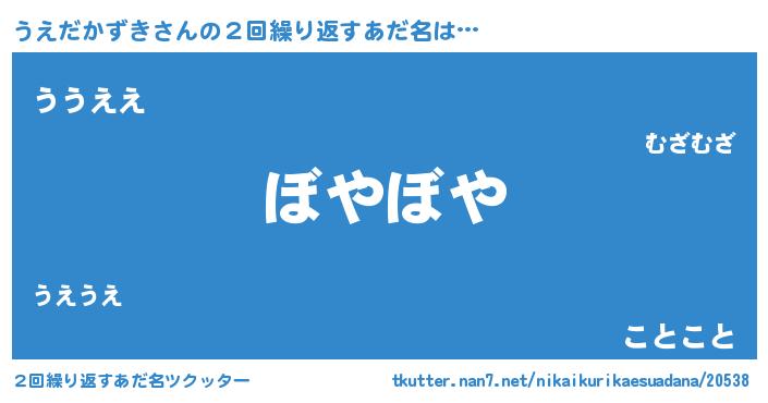 | 男性向けラノベタイトル風あだ名 | 『ノーゲーム・ノーウエダカズキ』 |