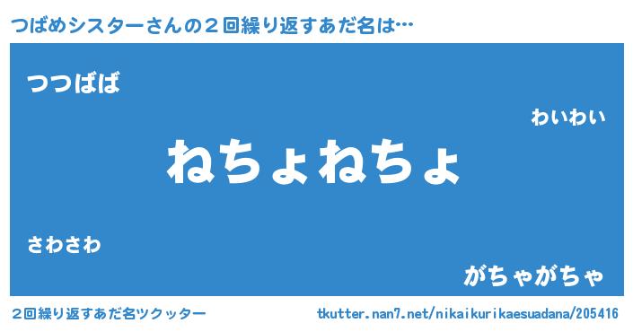 | 男性向けラノベタイトル風あだ名 | 『つばめシスターの嫁は女の子じゃないと思った?』 |