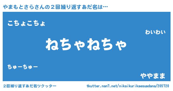 | 男性向けラノベタイトル風あだ名 | 『やまもとさらの嫁は女の子じゃないと思った?』 |