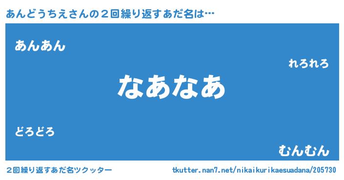 | 意味不明あだ名 | 『とにかく怪しいあんどうちえ』 |