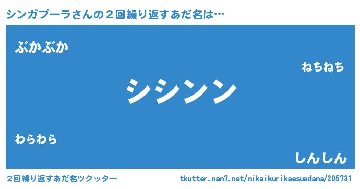 | 意味不明あだ名 | 『シンガプーラフォーエバー』 |