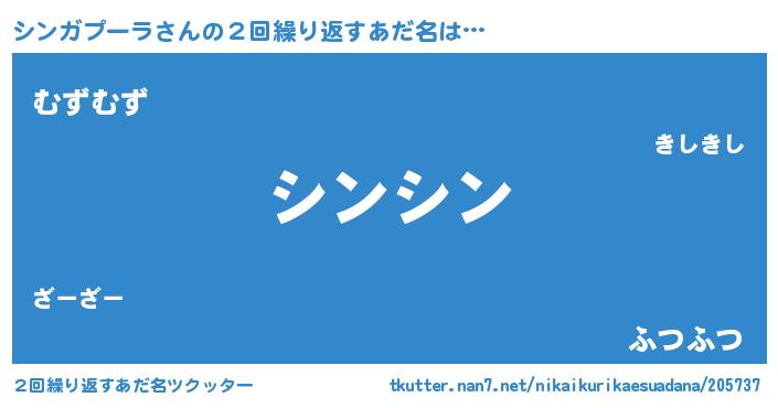 | 恥ずかしいあだ名 | 『プリティーシンガプーラ』『シンちん』 |