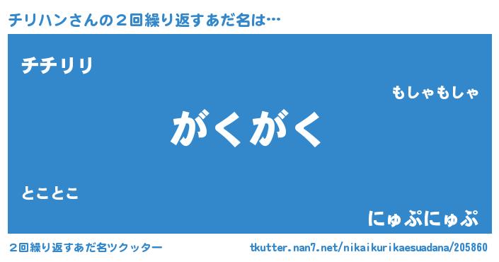 | 意味不明あだ名 | 『永久保存チリハン』『自称チリハン』 |